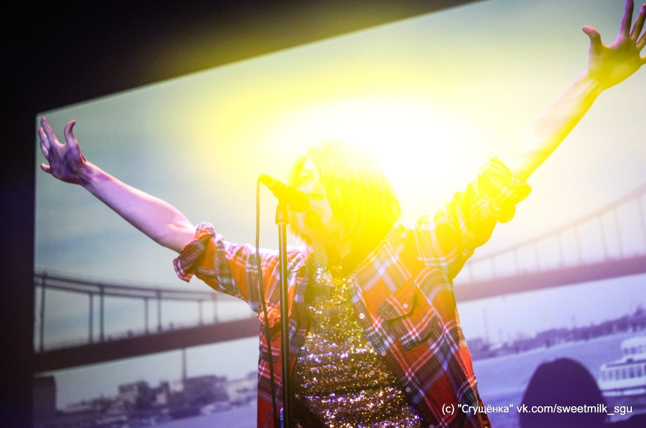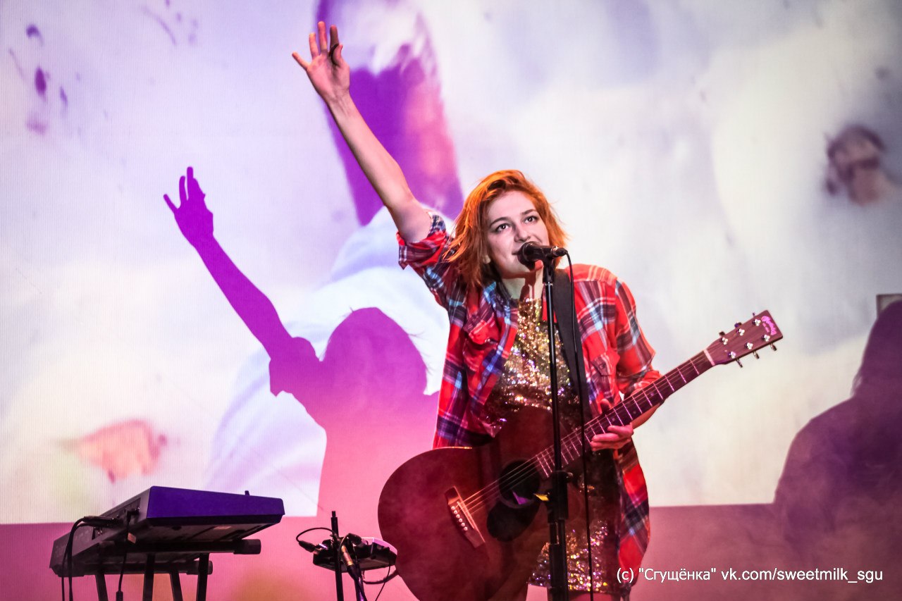 Мне безумно не хочется отрывать свой взгляд от сцены: Настя зажигательная, яркая и живая. Она пропускает через себя каждую песню, делится с залом своими ощущениями от композиций, от города, от людей. Сегодня выступать ей особенно волнительно, ведь в зале находится её мама, и одну из песен она посвящает ей.